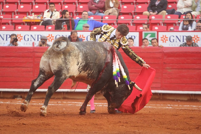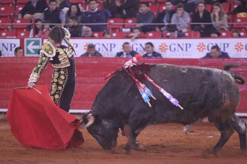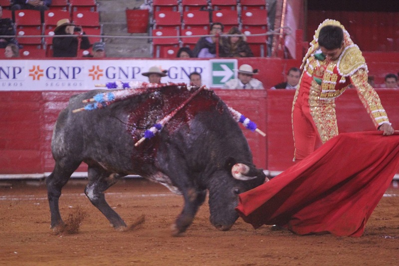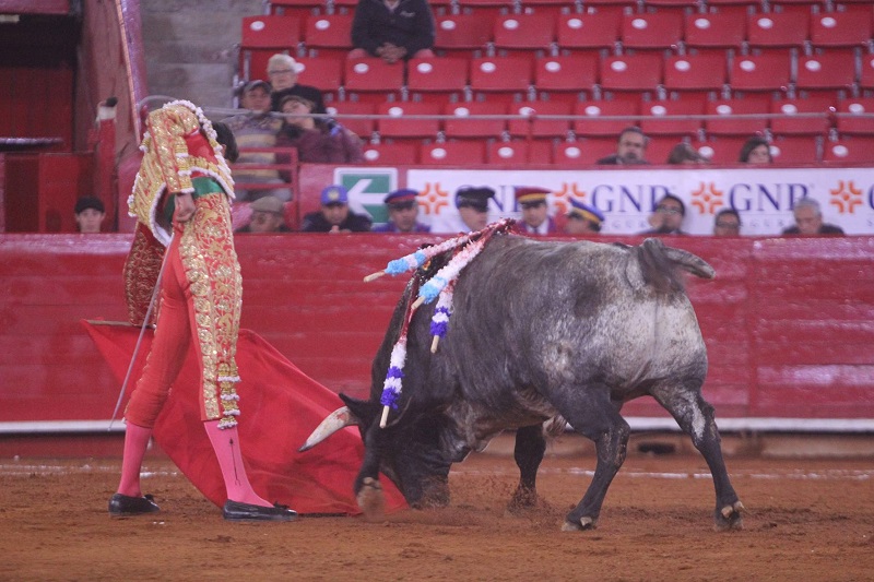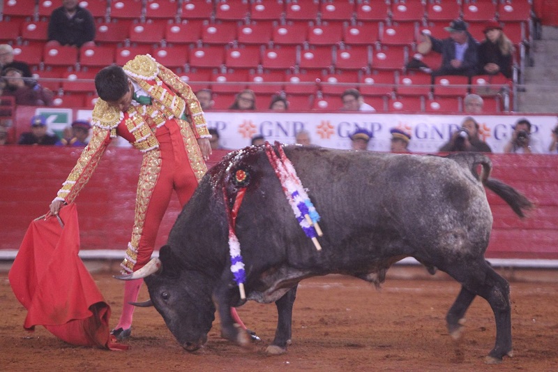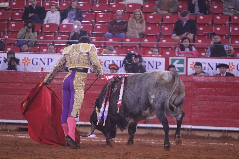 El matador tlaxcalteca SERGIO FLORES en el primer burel que le tocó en suerte jugó bien los brazos en lances a la verónica pero resultó desarmado. Luego de un problemático segundo tercio debido a que el astado se aquerenció en tablas acobardado, su labor muleteril ha tenido mucho mérito, primero, tratando de conseguir el lucimiento sin positivos resultados y, después, realizando una atinada labor de aliño, doblándose y toreando de pitón a pitón, lo que le elogió la concurrencia. Pasaportó entonces al de El Vergel de pinchazo, media estocada tendida y descabello, siendo aplaudido por el esfuerzo que desplegó.