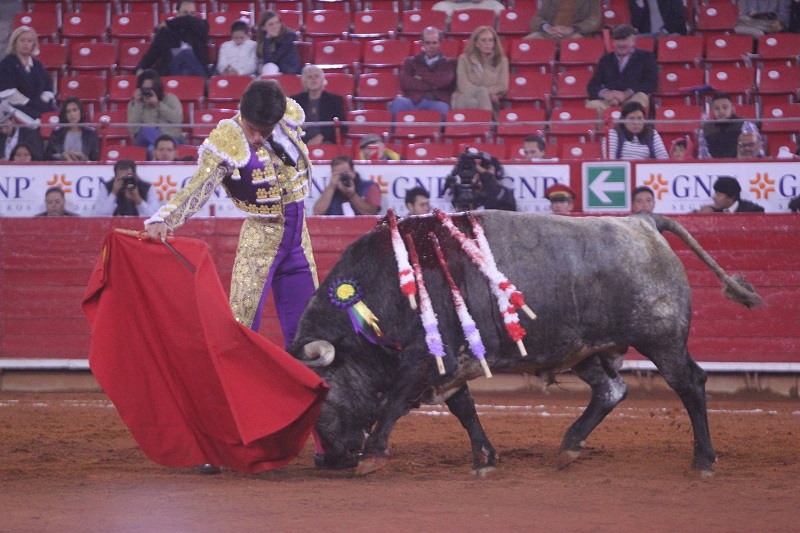 En el primer astado de su lote, el diestro potosino FERMÍN RIVERA veroniqueó toreramente y de la misma manera inició su quehacer de muleta, con doblones, para luego darse a torear erguido con suavidad por derechazos a pesar de la poca fuerza del toro. De la misma forma lo hizo por naturales, con temple y largueza exquisita en un par de tandas. Continuó con fineza por el lado derecho, llevando bien toreado al “socio” que no fue fácil y al que el torero entendió de manera estupenda, lo que se tradujo en más toreo natural, pleno de profundidad y calidad. Acortó la distancia y con la mano derecha endilgó más quehacer clasicista acoplando su ritmo y su temple a las embestidas del burel. Acabó de media estocada y tres golpes de descabello para ser despedido con fuerte ovación y escuchando un aviso.