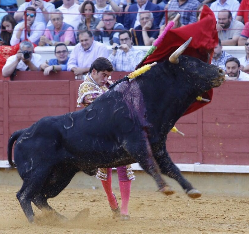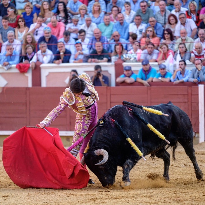 Garrido lo recibió rodilla en tierra con el percal. Con la muleta se metió entre los pitones. Firmó pasajes de verdadero mérito por el peligro de las cercanías. Pinchazo y estocada valieron un trofeo para el extremeño.