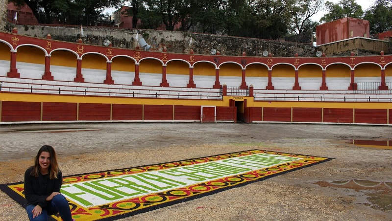 Con mucho cariño y afecto al joven diestro tlaxcalteca, Andrea Contreras, comentó que hoy más que nunca, Sergio Flores, requiere de la solidaridad y aliento del gremio taurino y que tuvo el detalle de poder elaborar este tapete en la Plaza de Toros, aun costado del ex convento franciscano del Siglo XVI, sede de la catedral, que por cierto fue sede de la toma de posesión del cuarto Obispo de la Diócesis de Tlaxcala, Julio Cesar Salcedo Aquino.