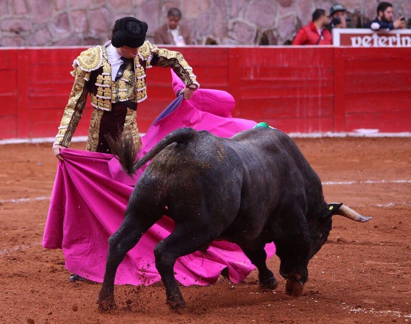 El diestro aguascalentense ARTURO MACÍAS en el primer ejemplar de su lote, con el capote bregó también con solvencia. Con la sarga, tras brindarle al matador de toros zacatecano Antonio Romero, celebrando así que ya está recuperado de la grave cornada que sufrió en la Monumental Plaza México, Macías comenzó doblándose con suavidad y largueza. Siguieron tandas de derechazos aguantando y domeñando talento y ligando en un palmo de terreno, terminó con labor de aliño muy torera, pues el toro ya había rajado por completo. Terminó de dos pinchazos y estocada entera para escuchar palmas.