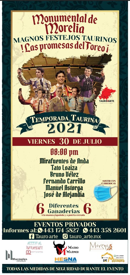 Una interesante novillada es la que se llevará a cabo el 30 de julio en la Monumental de Morelia, donde en punto de las 20:00 horas harán el paseíllo Mirafuentes de Anda, Tato Loaiza, Bruno Vélez, Fernando Carrillo (foto), Manuel Astorga y José de Alejandría, quienes lidiarán ejemplares de diversas ganaderías.
