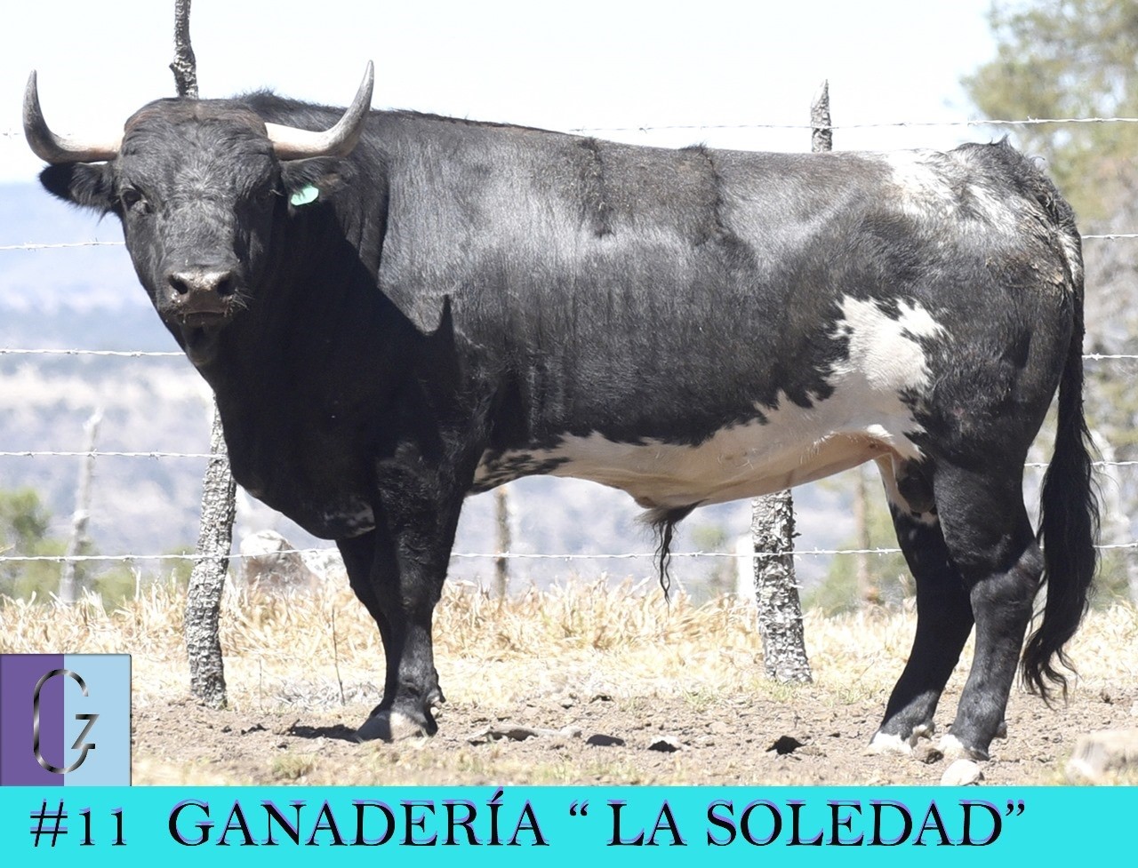 Se trata del toro marcado con el número 11, de pelaje negro, bragado corrido, jirón, nevado, rabicano, jarretero, caribello y cornivuelto.