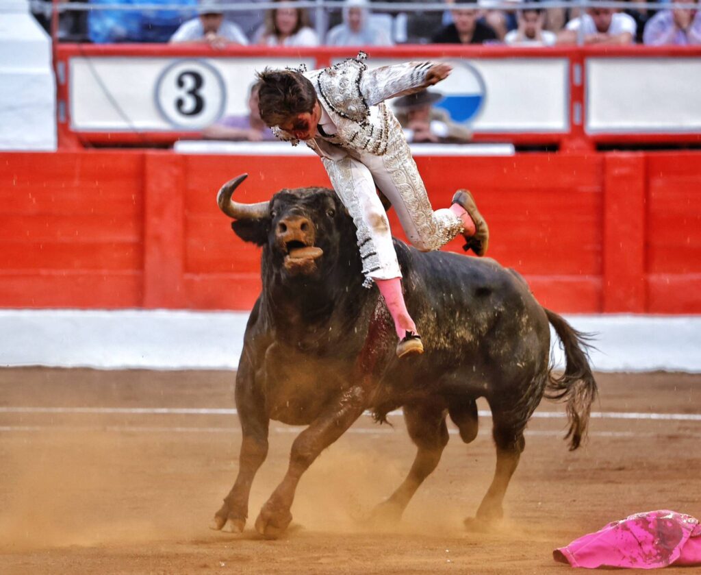 Salió de la enfermería Marco Pérez a matar el quinto, un castaño de Casasola al que le cuajó varias verónicas con temple. Pérez sacó su raza y sus ganas de ser figura. Lo demostró en esta faena, cargada de épica, al ser cogido de nuevo, sin consecuencias. Derechazos encajados, componiendo, series donde el público se entregó. Estocada casi entera, tardó en caer. Oreja.