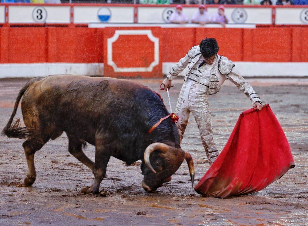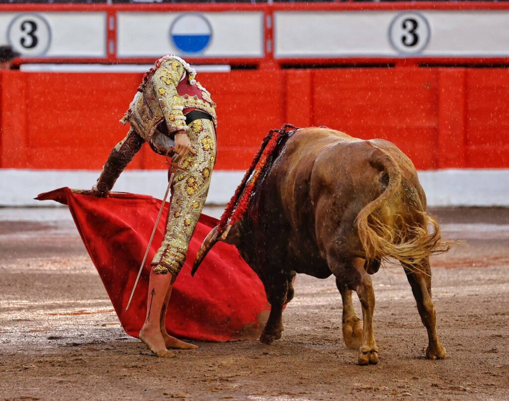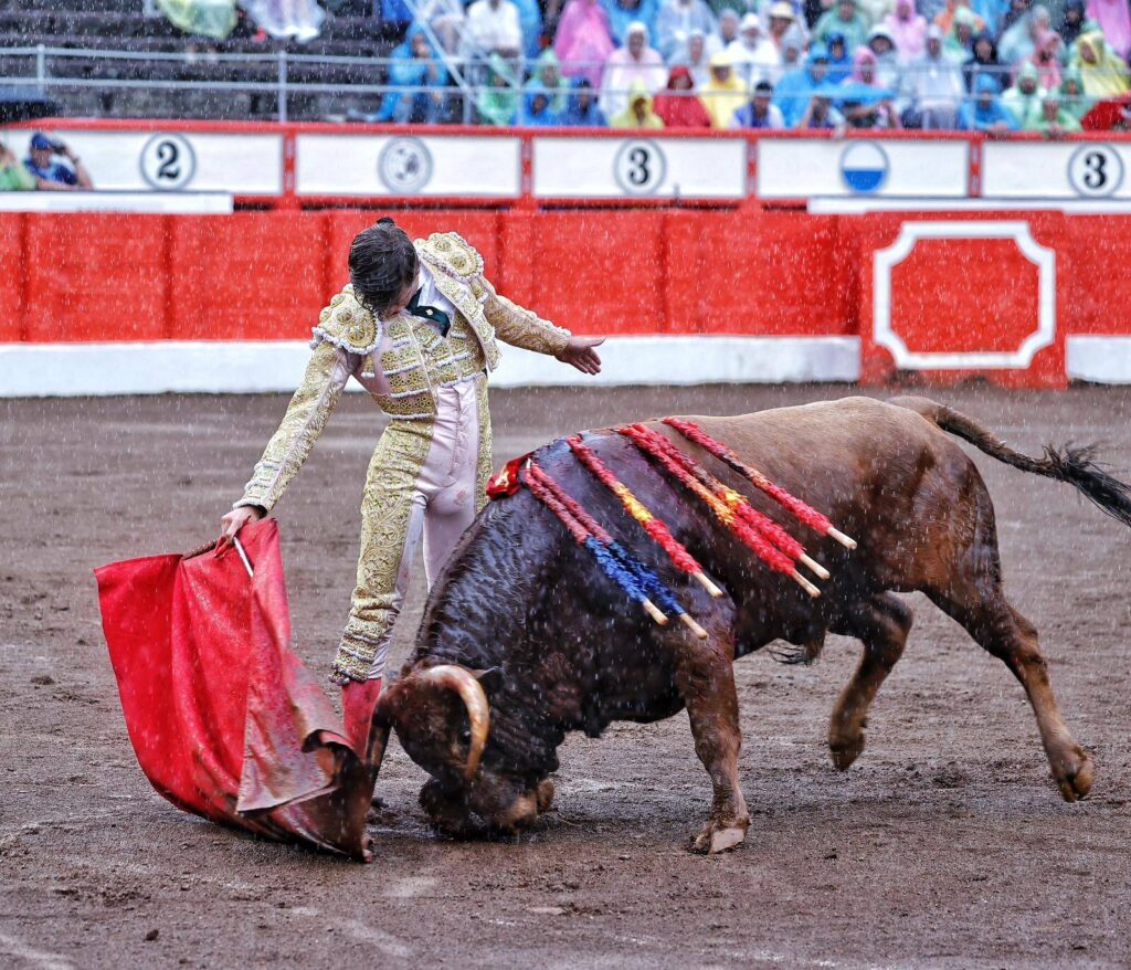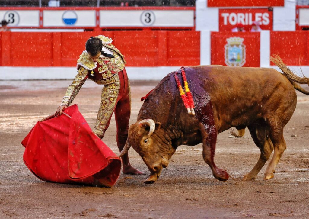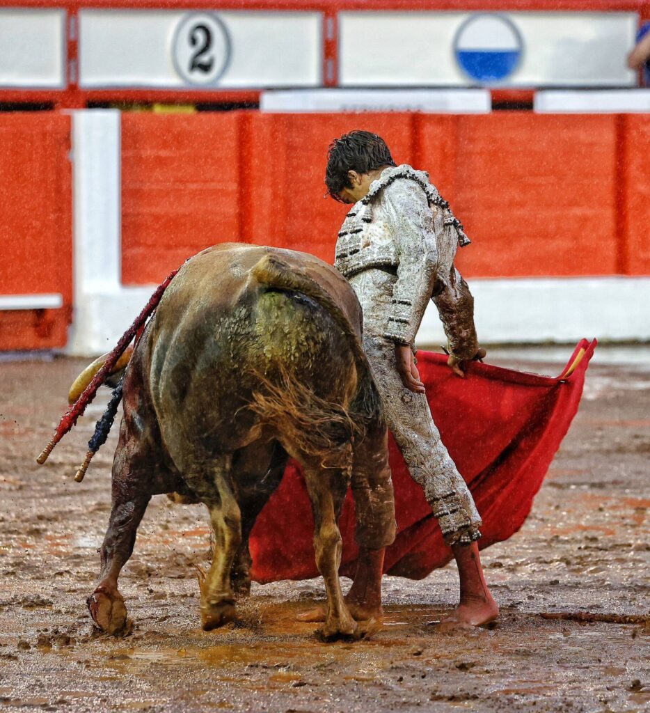 Zulueta firmó una gran faena en el tercero. Un novillo con poca fuerza y al que siempre templó con la muleta. Se mostró firme ante el auténtico diluvio que caía.