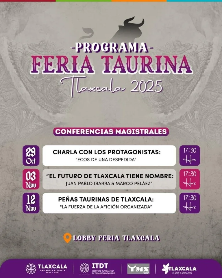 Se informa que, el Instituto Tlaxcalteca de Desarrollo Taurino (ITDT), en coordinación con el Patronato de Feria de Tlaxcala, ha presentado el programa oficial para los eventos culturales taurinos que vestirán la tradicional Feria de Todos los Santos Tlaxcala 2025.