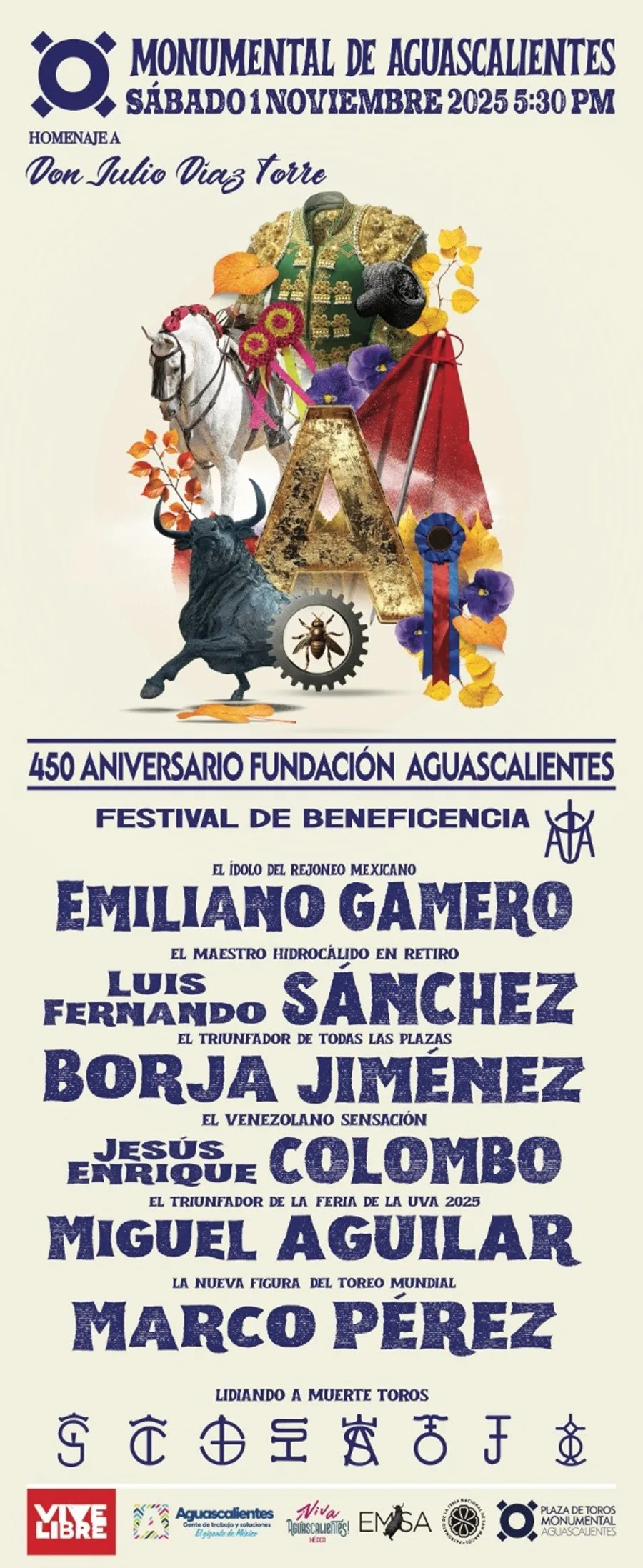 El rejoneador mexiqueño Emiliano Gamero invita a toda la afición taurina a que acuda el próximo viernes 1 de noviembre de 2025, a partir de las 17:30 horas, al coso Monumental de Aguascalientes, con motivo del Festival Taurino Internacional y de lujo a beneficio de la Academia Taurina Municipal de Aguascalientes “Alfonso Ramírez ‘El Calesero’”.