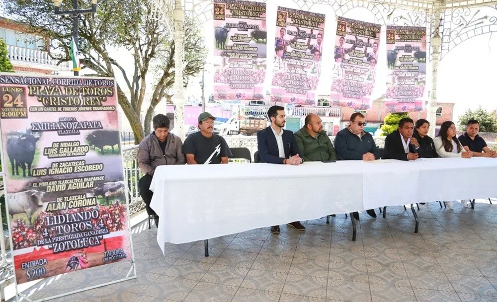 Se informa que, en el kiosco del zócalo del municipio de Emiliano Zapata, Tlaxcala, se ha presentado el cartel para la corrida de toros de feria en honor a «Cristo Rey».